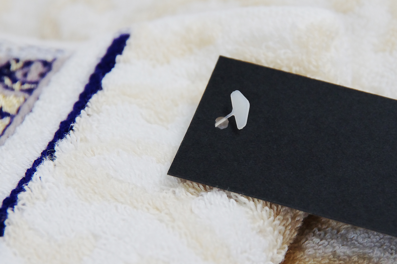 Tag pin made of strong nylonCorresponding tag pin is a [US pin] made of nylon which has strength and cannot be torn.